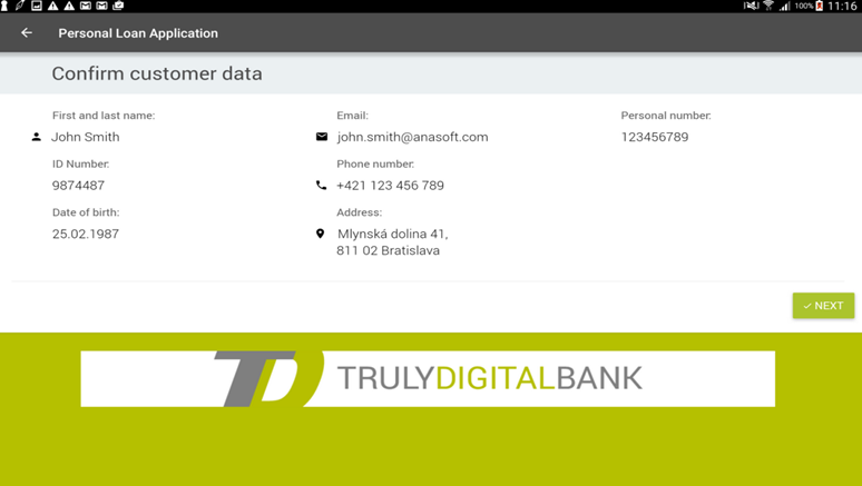 The Example Wizard is designed to guide couriers through every step of a sample delivery process. As the first step, the customer must confirm that the displayed data is correct. By clicking “Next”, the user will proceed to the following step.