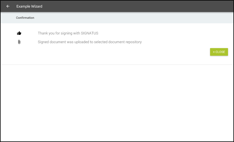 Successful submission of the document to selected repository is confirmed at the end and wizard can be closed.