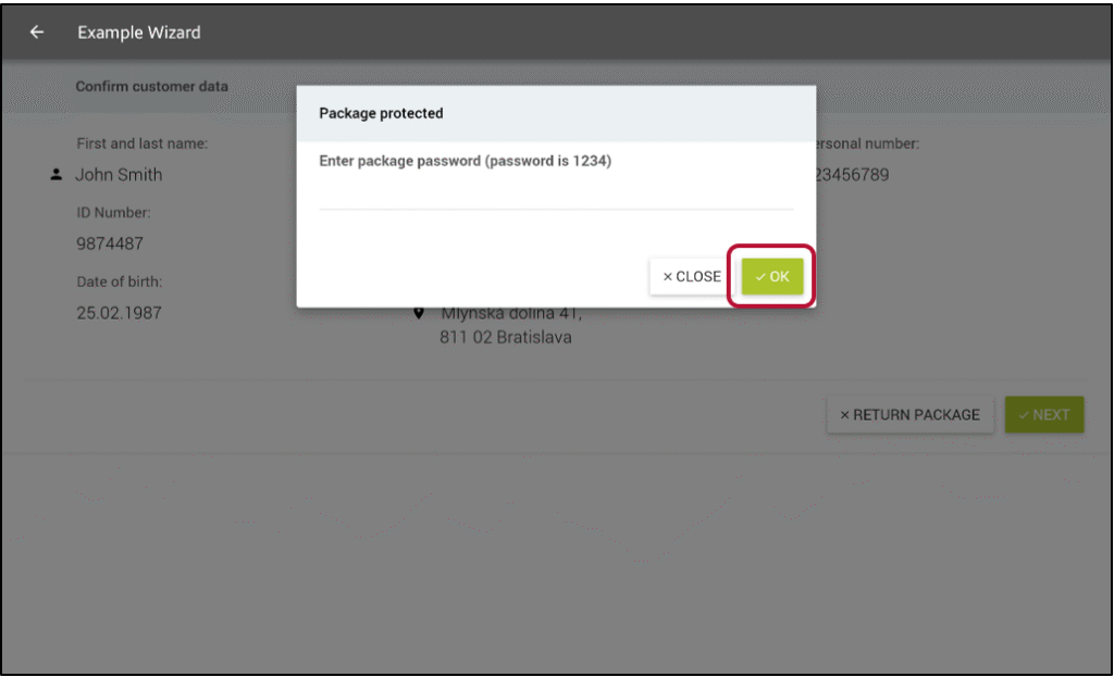 The package is protected by a password known only to the customer. The password must be entered to continue.