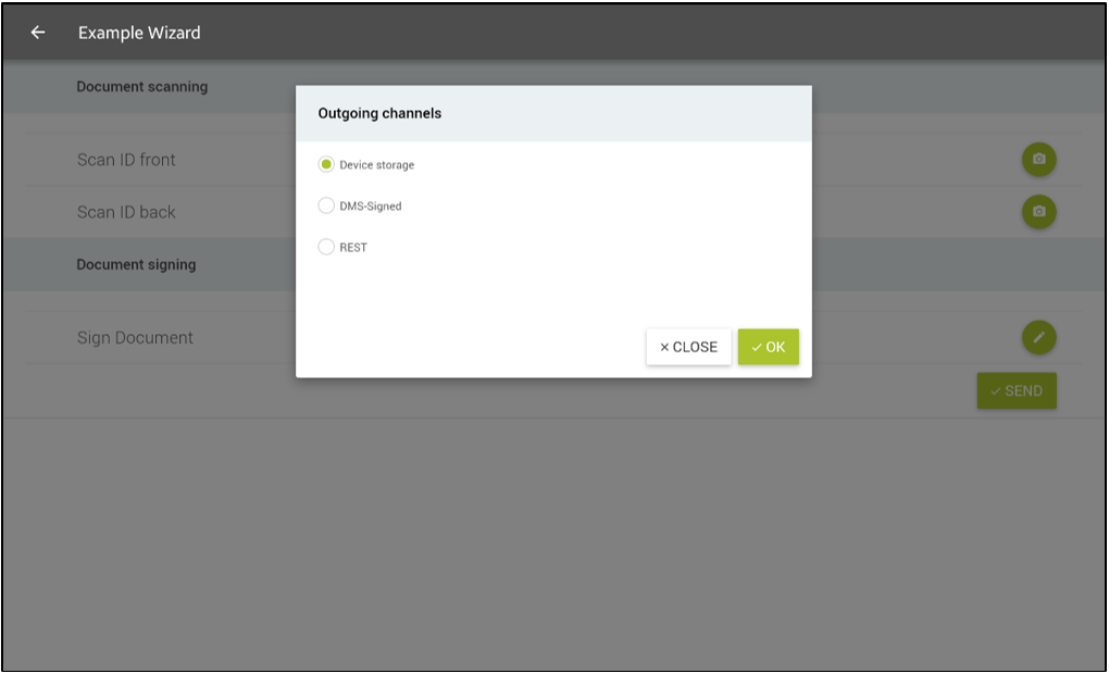 Using wizards, you can orchestrate complex workflows that run before and after one or more documents are signed. Because a wizard runs inside a full-screen web view, it offers extensive flexibility. For example, a wizard can retrieve additional data from external systems via AJAX, use JavaScript libraries such as jQuery, or dynamically adjust the user interface during the process.