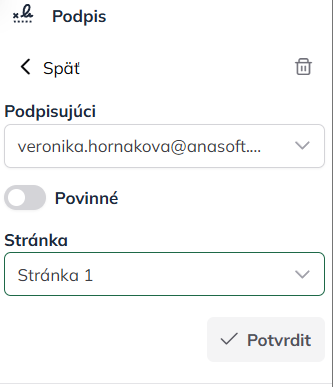 Podpisové pole sa priraďuje ku konkrétnemu podpisujúcemu podľa jeho e-mailovej adresy.