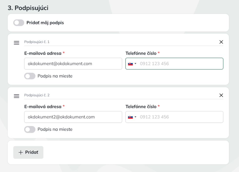 E-mail: Povinné pole pre identifikáciu každého podpisujúceho.
